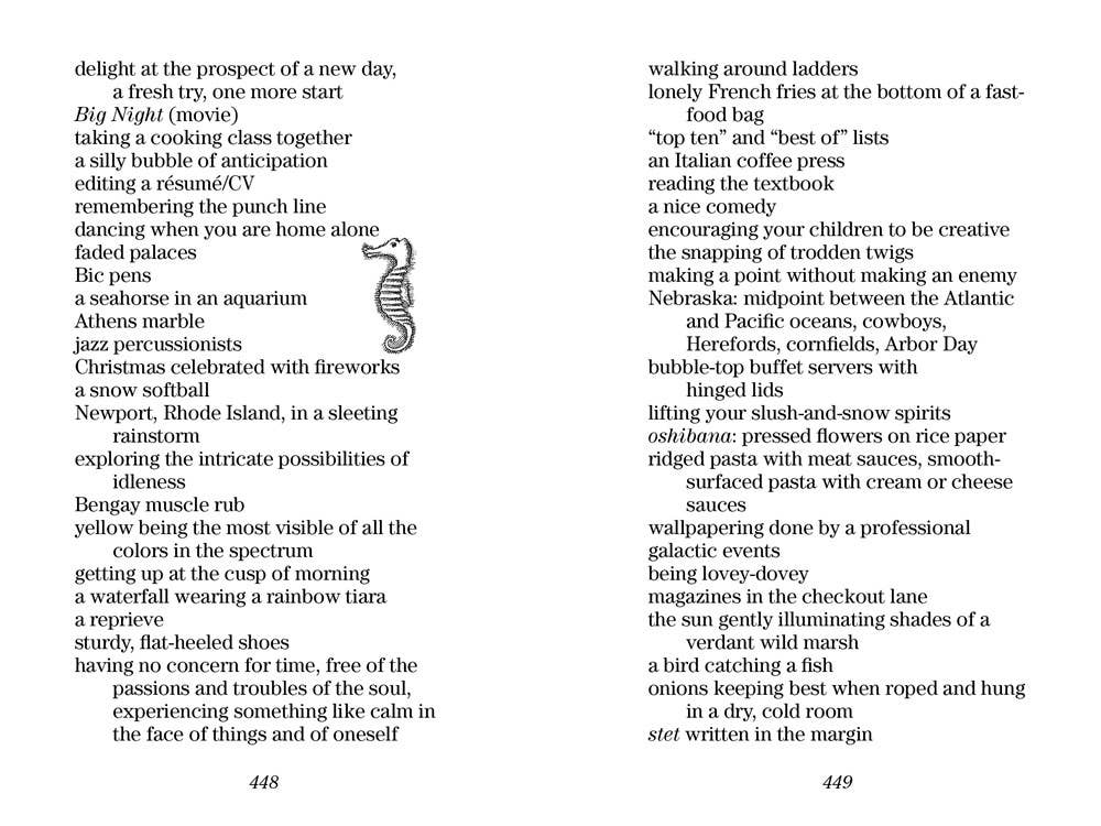 medium discount. Get a lift from this pocket-sized book of reminders of the abundant joy all around us, if we can see it. No editorializing, footnotes, explanations, aside, or proselytizing to be found here. Just 14,000 things that are pretty great. Appropriate for all ages. Some representative examples: