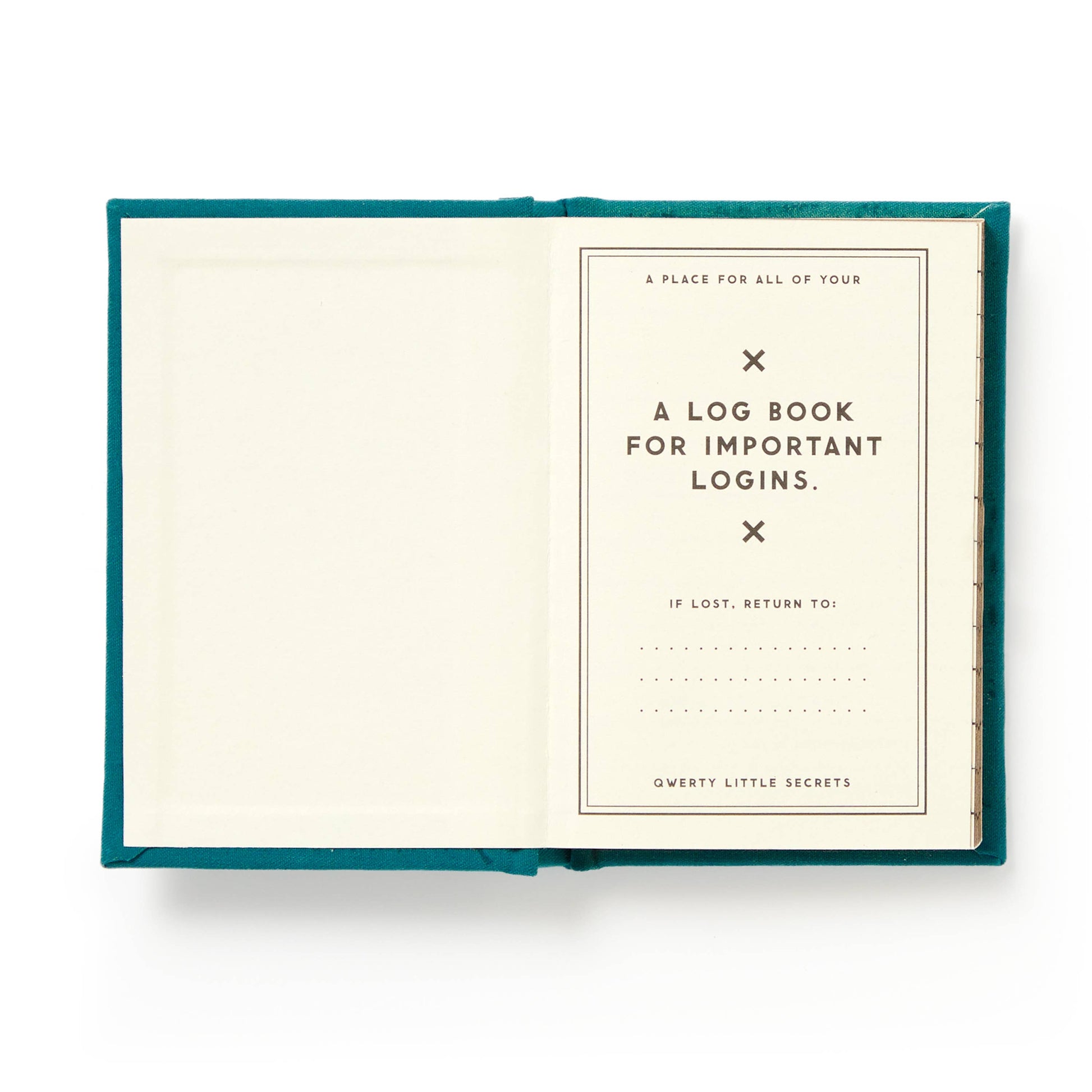 VINTAGE INSPIRED - Features a perfect bound foil stamped felt cover with gold edged paper cover and 112 pages, each one designed to note your weirdest yet mind boggling password character rules.