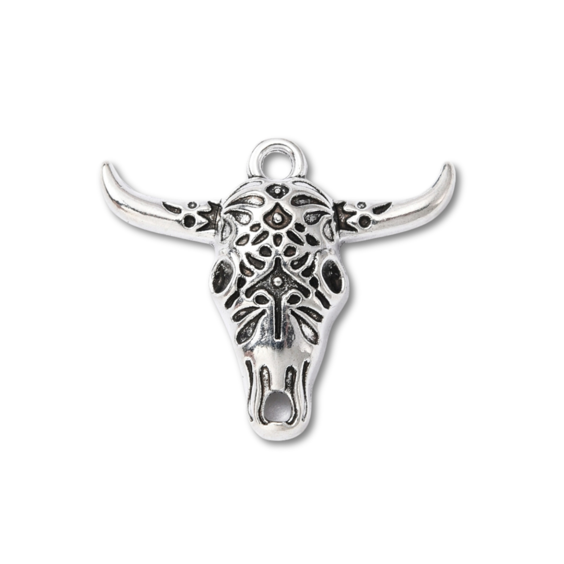 Show off bold western style with this bullhead charm, crafted from alloy and finished in a rugged silver tone with a detailed head. Perfect for bracelets, necklaces, or keychains, this charm is a favorite for rodeo fans, southwestern jewelry collections, and rustic country themes. Add it to your charm bar display to offer customers a striking, western-inspired design. Ideal for boutiques, gift shops, and DIY creators looking for cowboy, ranch, or farmhouse-style jewelry supplies.