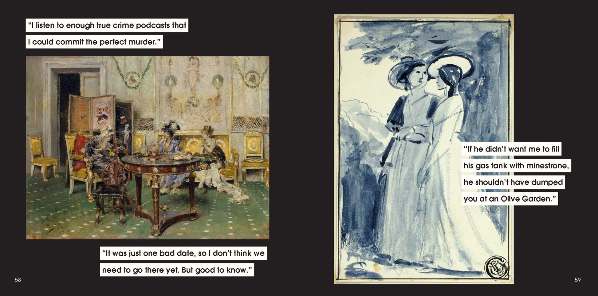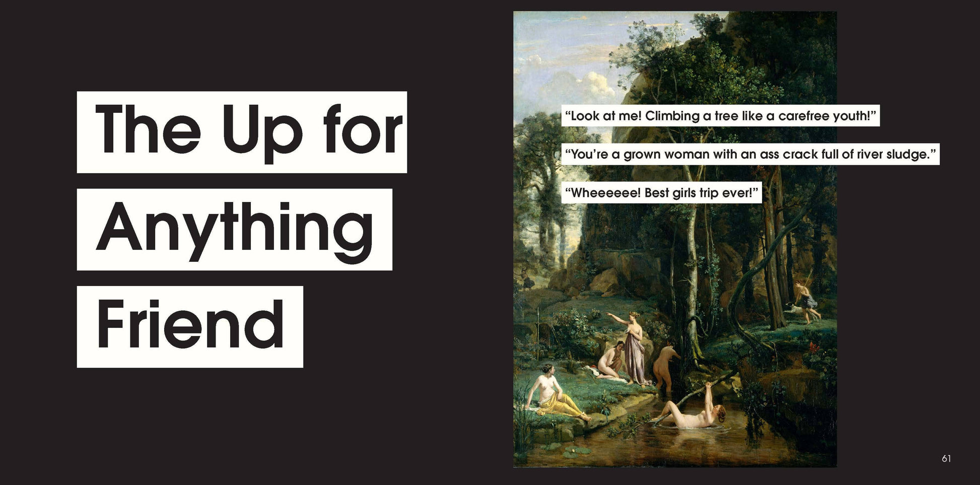 Pairing classical paintings with funny, irreverent captions, Nicole Tersigni honors all sorts of sacred female friendships and the miscellaneous nonsense that brings women closer together. Focusing on five major friend types (the Work Friend, the Nurturing Friend, the Hide a Body for You Friend, the Up for Anything Friend, and the Super Honest Friend), Tersigni's meme-style humor perfectly captures all of the weird-but-special, intimate, cherished, and often laugh-out-loud moments that define female friendship.