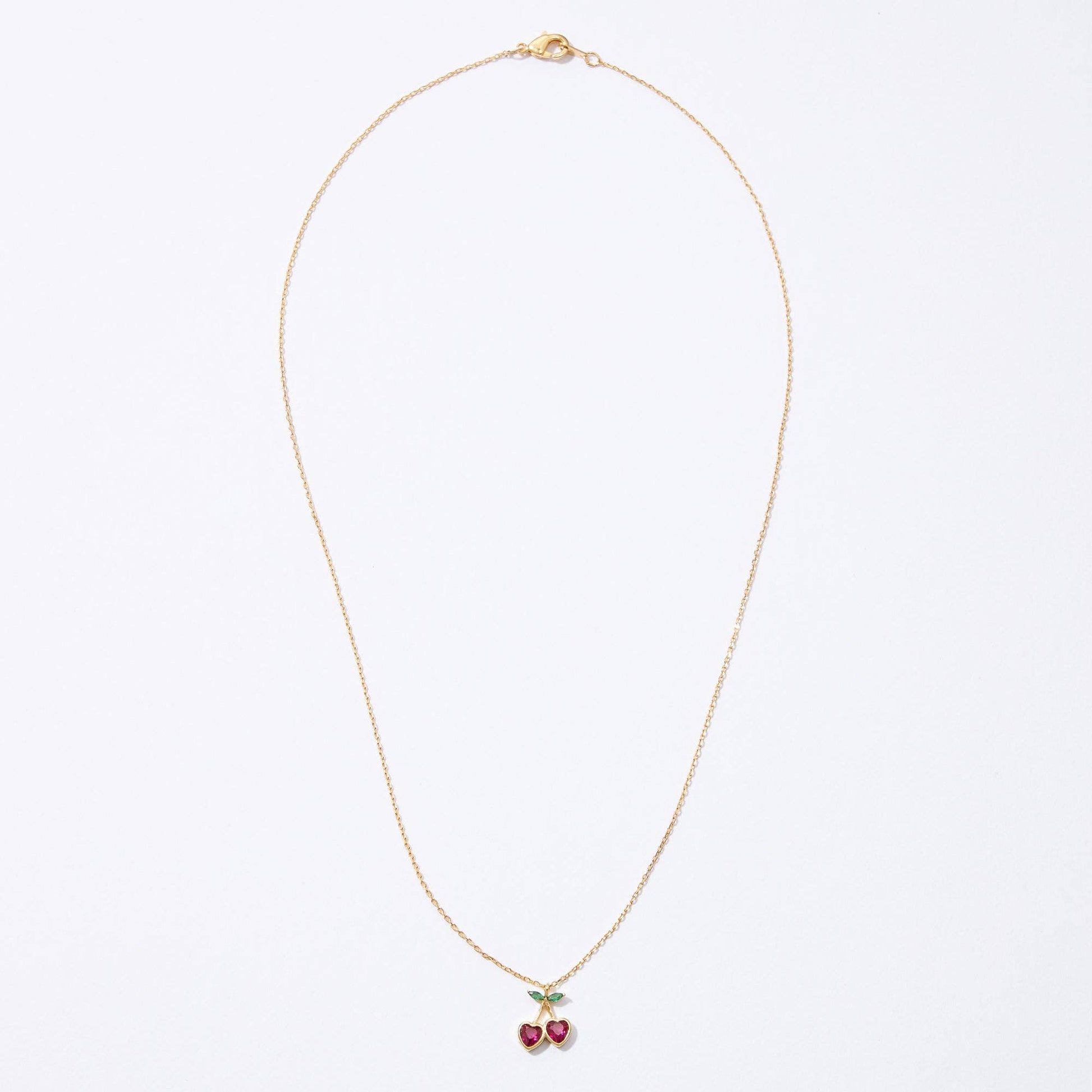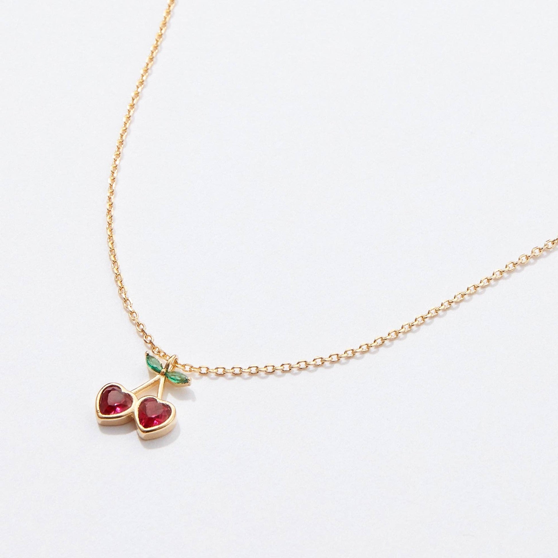 Add a touch of sweetness to your jewelry collection with this gold cherry necklace, featuring heart-shaped red gemstones set in a delicate cherry design. The dainty gold chain enhances the elegance of the piece, while the green leaf accents add a playful yet sophisticated charm. Perfect for everyday wear or as a thoughtful gift for women and girls, this necklace is a must-have for those who love cute and minimalist jewelry.