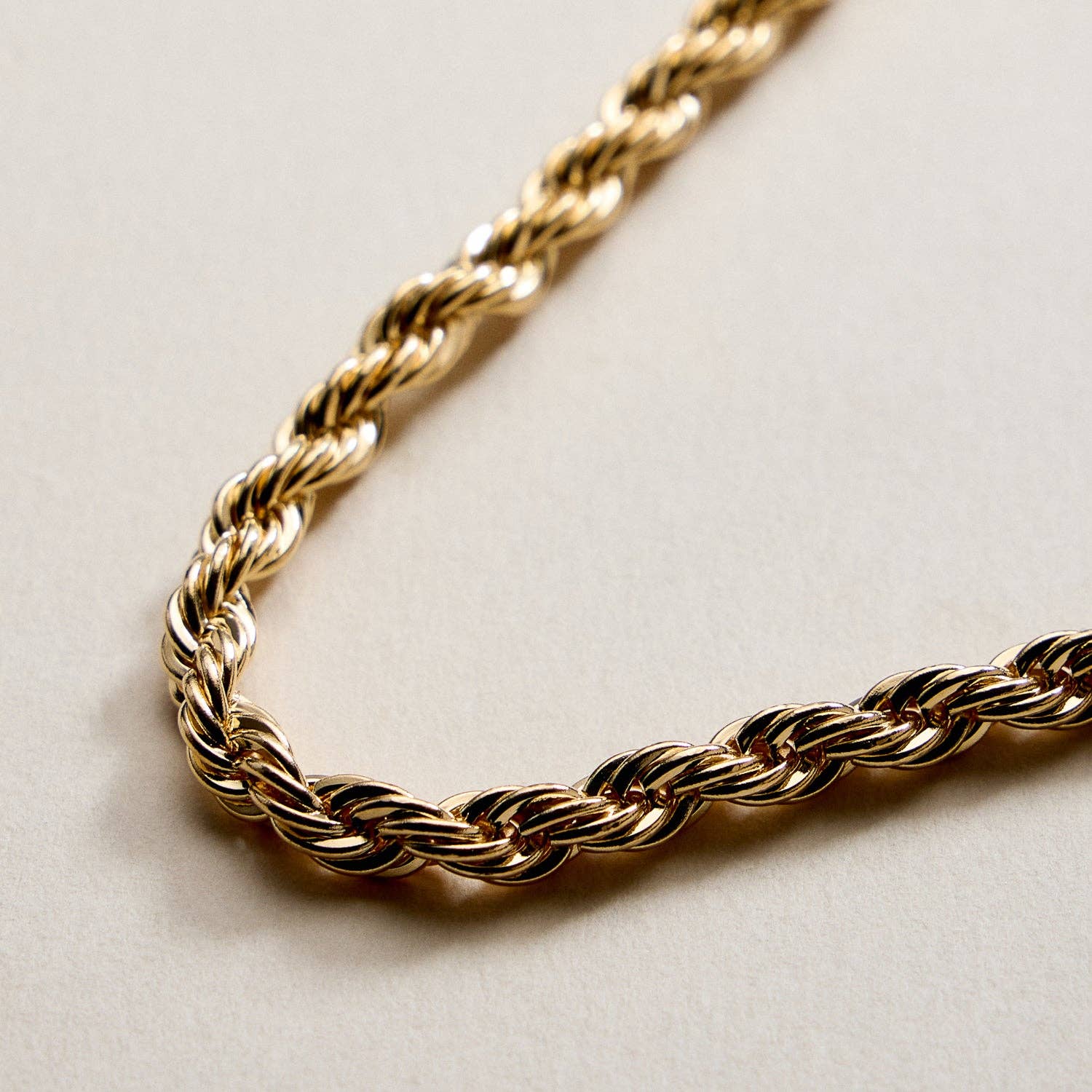 Design: Thick, twisted rope chain with smooth polished finish