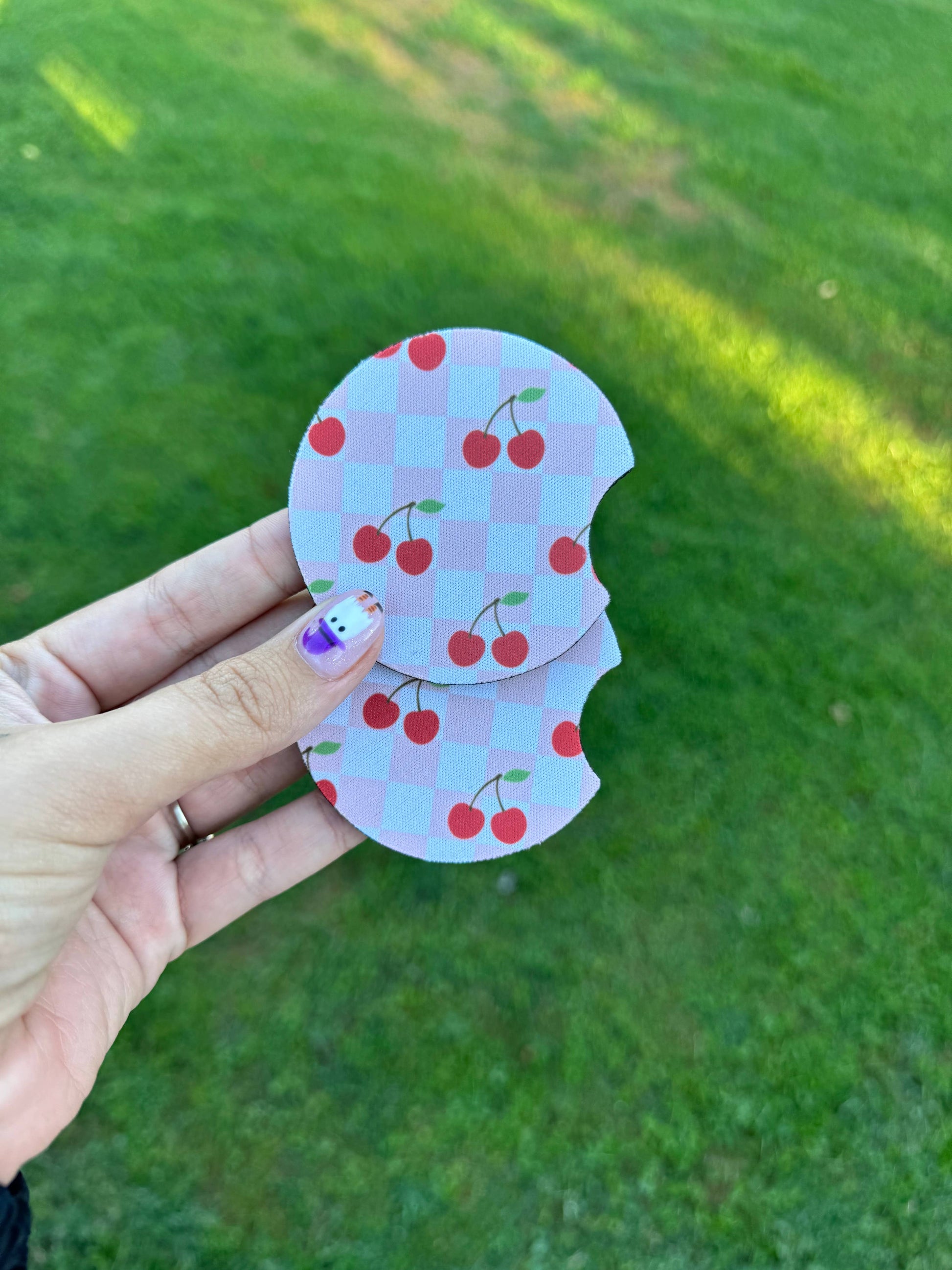 Pink Checkered Cherry Car Coaster Set
