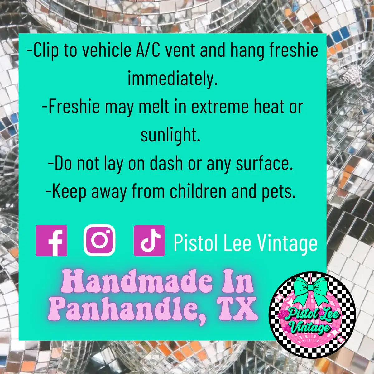 -Clip to vehicle A/C vent and hang freshie immediately.
