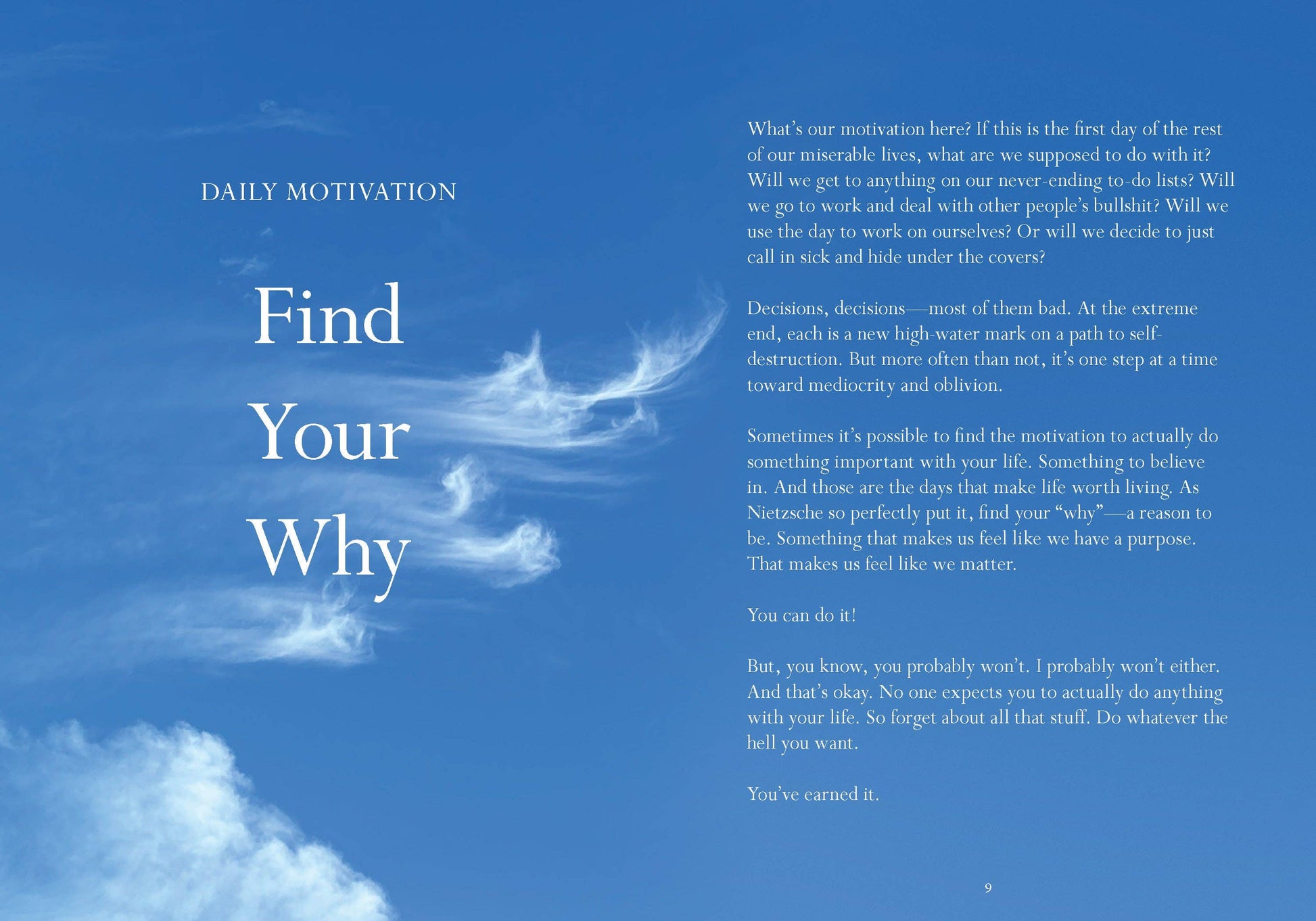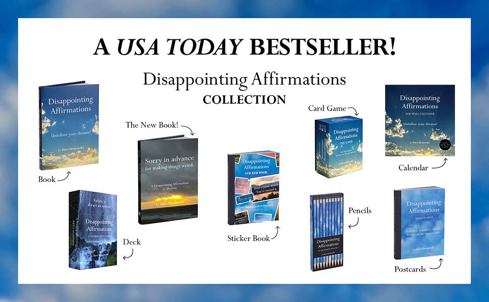 National bestselling author Dave Tarnowski, the visionary behind the 2.4-million+ follower @DisappointingAffirmations Instagram account, is back with a fresh and funny brace of realistic affirmations that recognize that failure is always an option across the many splendors of our lives.