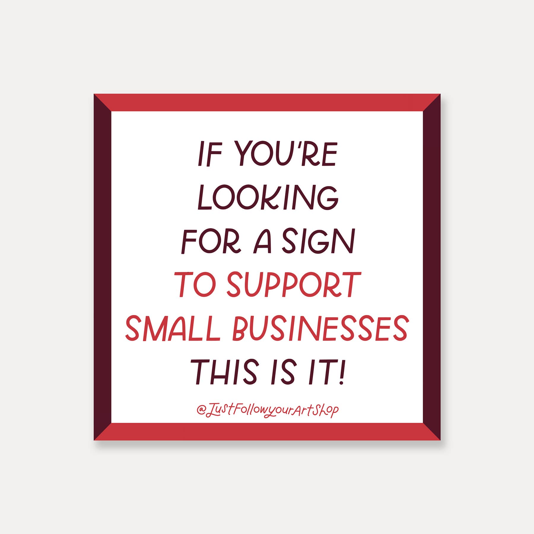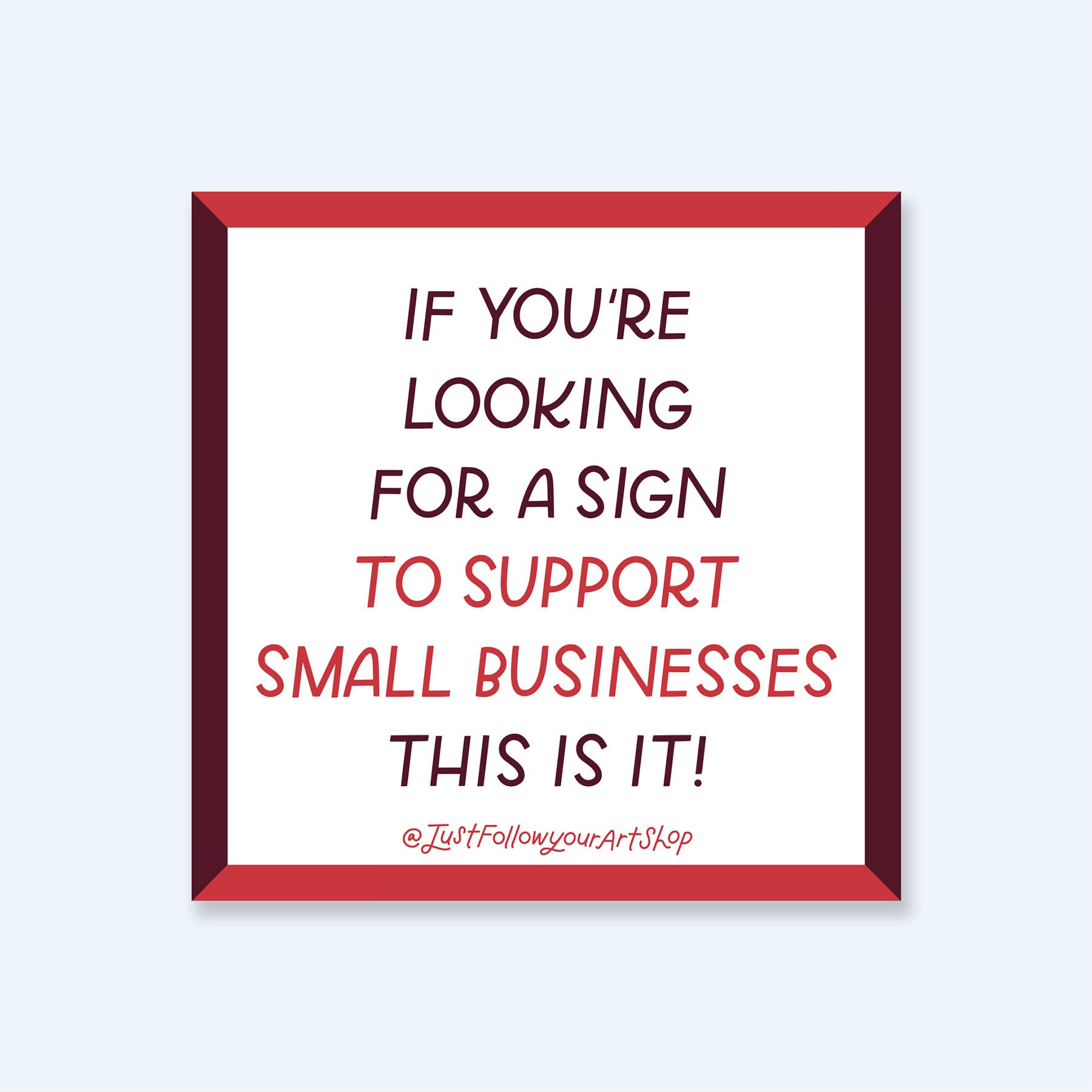 Sticker Uses: If You're Looking For A Sign, Vinyl Sticker, Support Small Business, Shop Small, Support Local, Shop Small Business, Small Business Sticker, Square Sticker, Red and Burgundy, Sticker With Words, Waterproof Stickers, Original Artwork, Hand Lettered Design, Woman Owned Small Business, Michigan Artist.